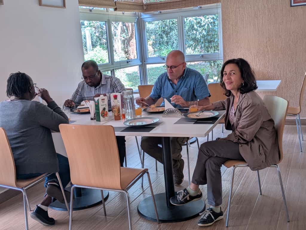 (Photo on the Left) Fr. Ismael Matambura SJ., AJAN Director together with Juan Emilio Hernandez at AFRICAMA House (Photo on the Right) is the Fr. Ismael Matambura SJ., AJAN Director, Ms. Pascalia Sergon, AJAN Capacity Building Officer having lunch with Canadian Jesuits International (CJI) Executive Director, Jenny Cafiso, and International Programs Coordinator, Juan Emilio Hernandez.