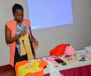 Danida Izereyezu, from the 4th cohort started crocheting as a mere hobby. After receiving JUC’s training however, she gained the confidence to grow as a business. She used the start up funds provided by JUC to purchase raw materials. After making enough products she exhibited them at expositions and her clientele grew.